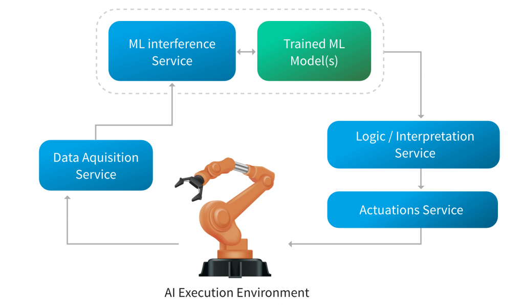 This article describes how Machine Learning can be used in production systems within the shopfloor by combining edge devices specialized for AI with a robust and versatile implementation of a software stack to embed Machine Learning applications.